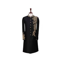 A long, formal coat with intricate embroidery, worn for weddings and festive occasions. This dress for men is only worn at weddings in South Asia.